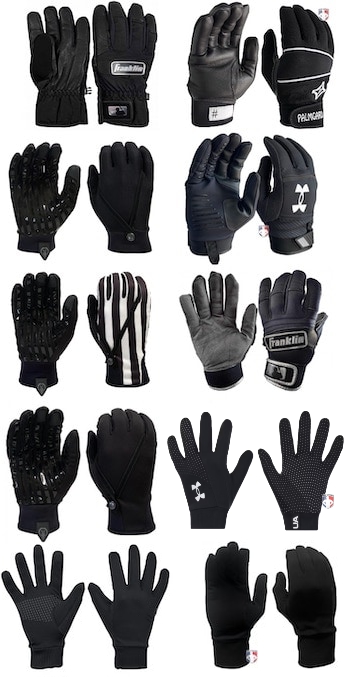 You will find the right combination of warmth, grip and dexterity here based on the weather and the functions you perform (e.g. a plate umpire needs more grip and dexterity for indicator, writing and ball bag use than a base umpire).